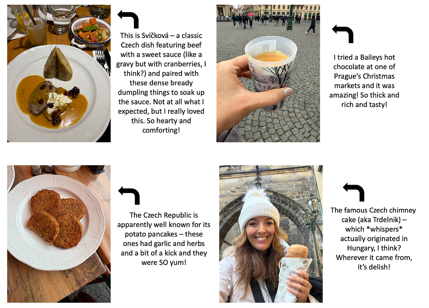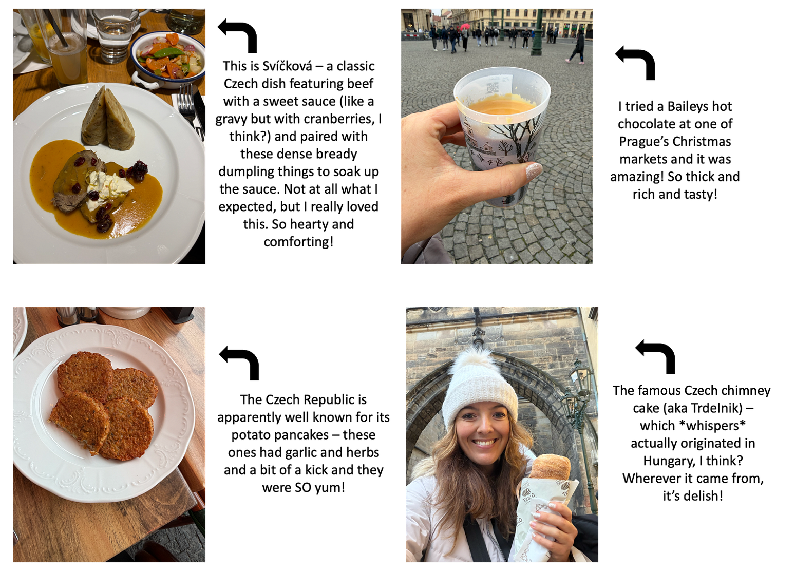 Right, I promised to stop with the travel pics, but just quickly to finish this post-trip wrap-up, I mentioned before that scenery-wise, Switzerland took the top spot. But food? That one is tricky. Czech food was so hearty and comforting. (Plus the chimney cake? YUM!) I honestly had some of the best food of my life when I was in Europe, across every country I visited, but if I HAD to pick a top spot, then that award probably has to go to France. I’m still dreaming of the pastries! (The flan?!? STOP IT! *drools*)
