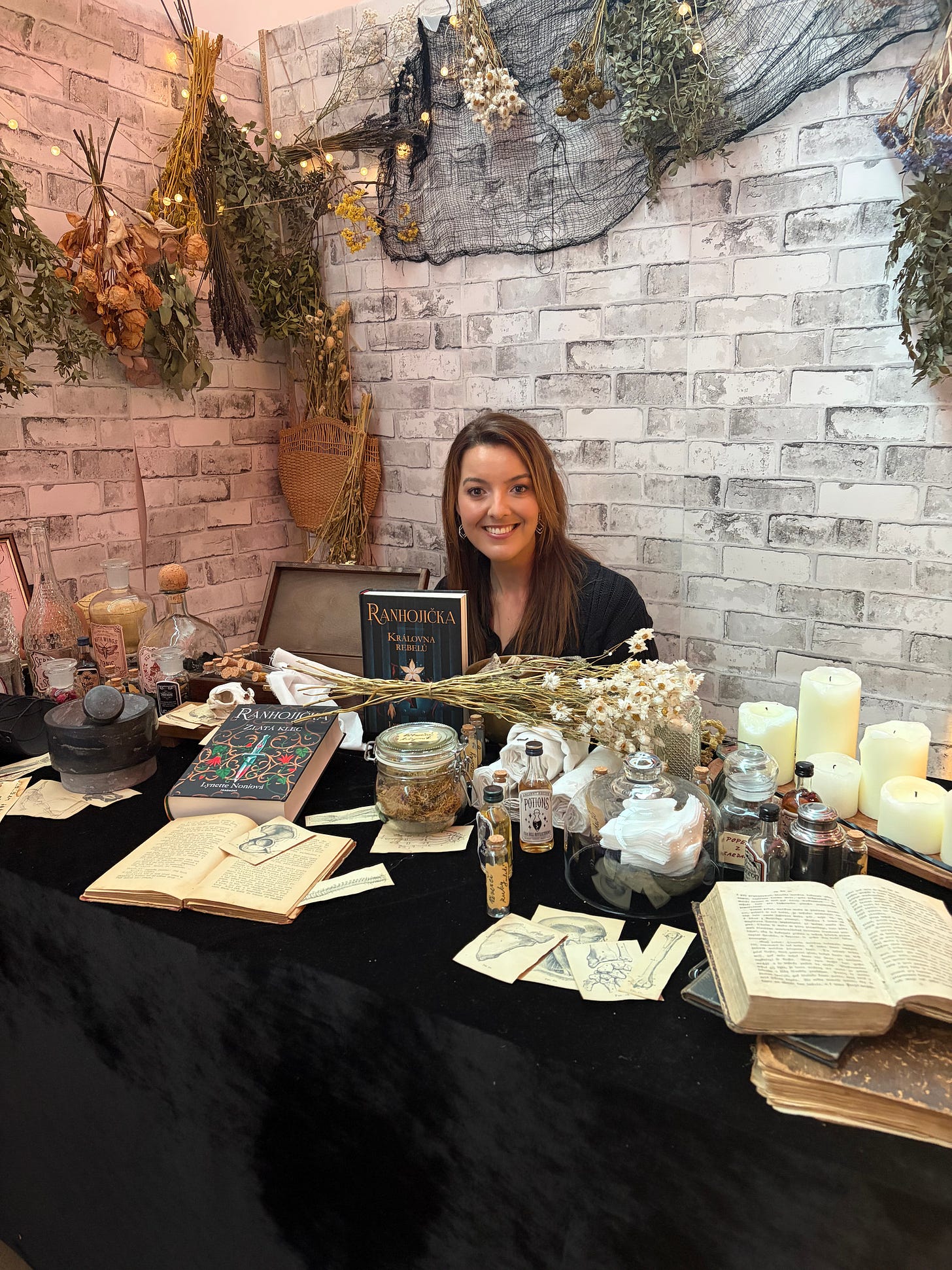 And my amazing Czech publisher also set up this INCREDIBLE apothecary-style healer stand for The Prison Healer: