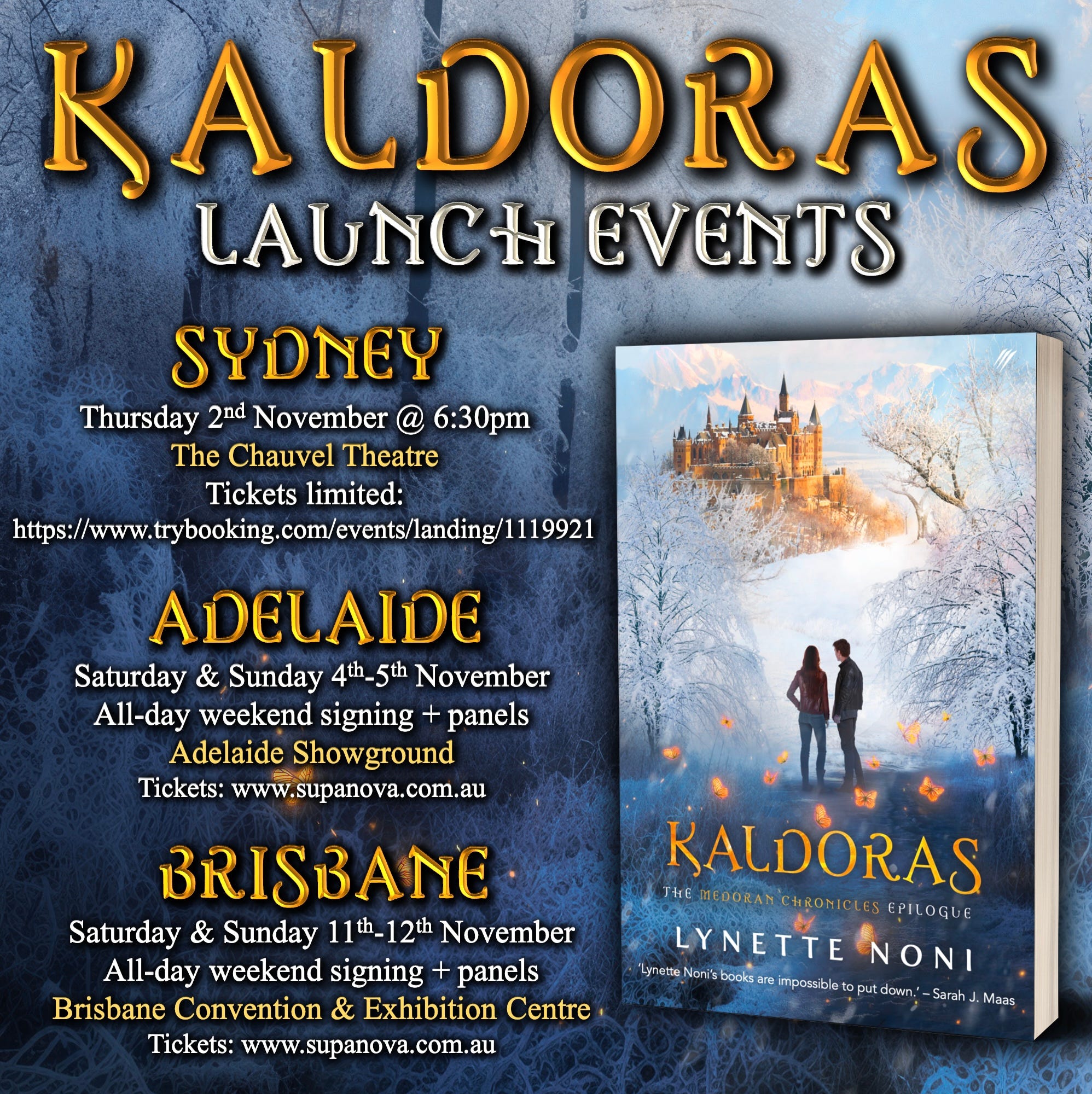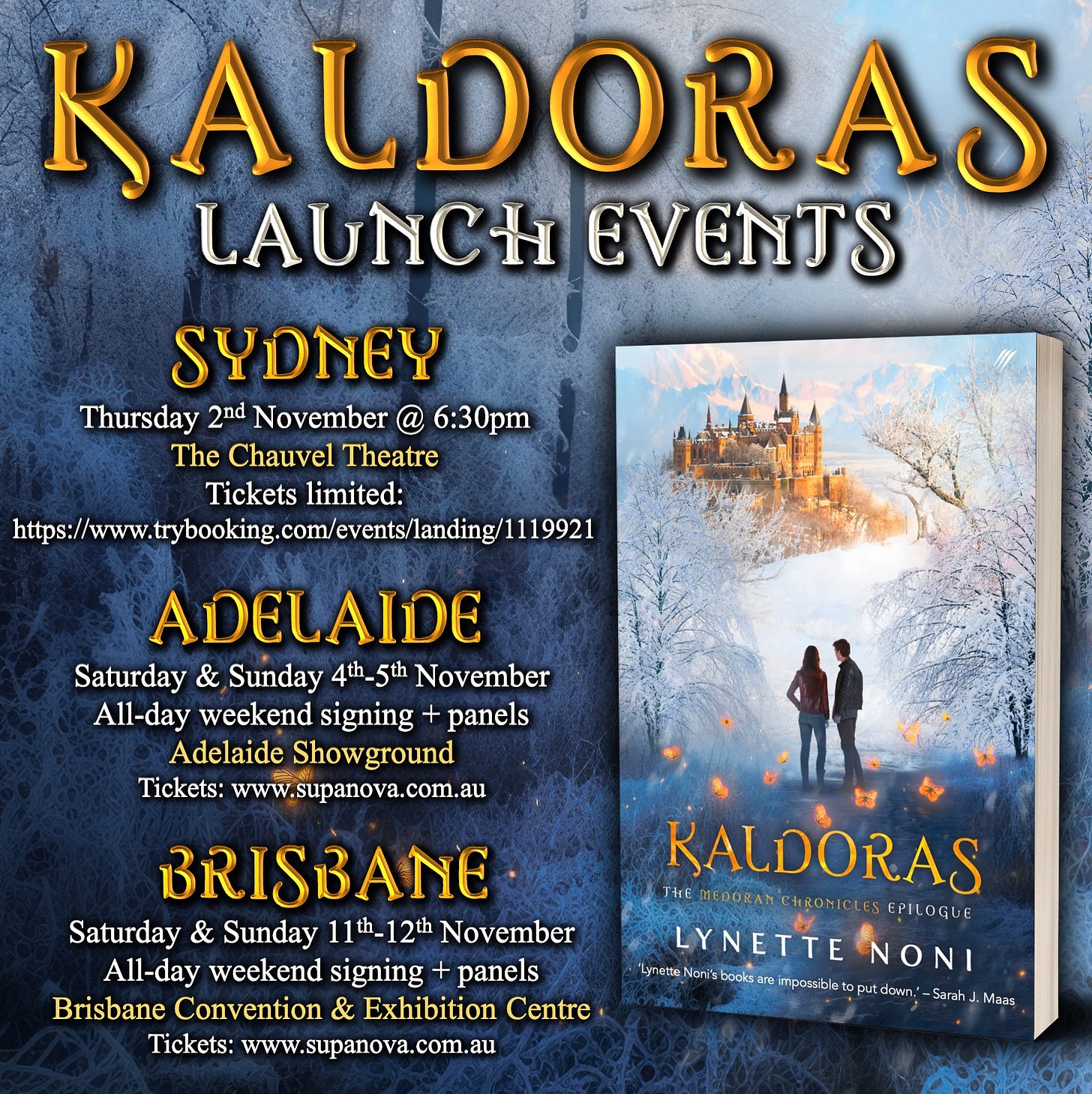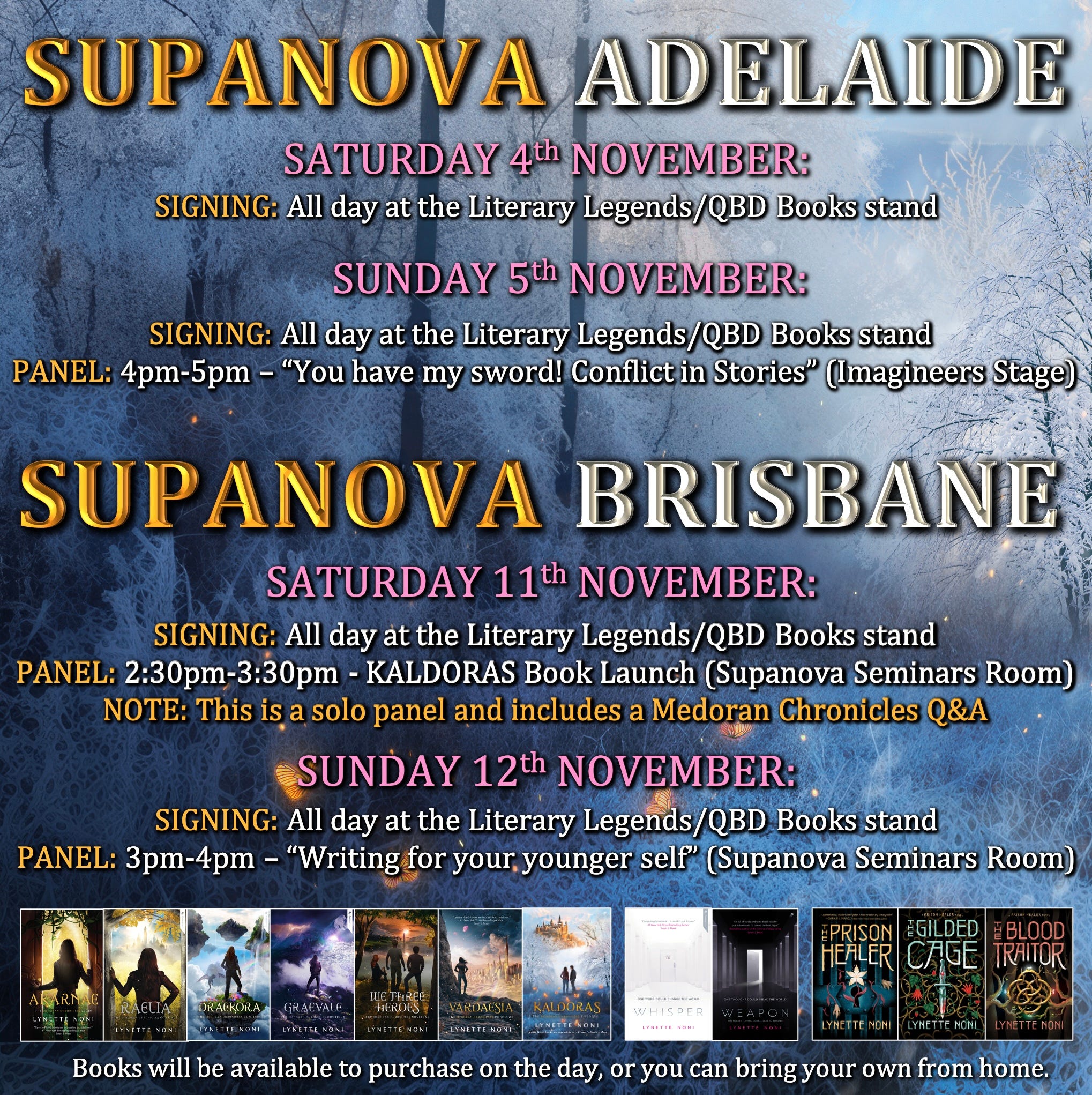 For my specific Supanova schedule, including panel times (and the solo panel I’m doing for the Kaldoras launch (including a full Medoran Chronicles Q&A) in Brisbane), check out the details below: